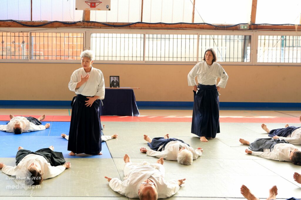 Commission féminine : Emiko, vous êtes également très investie dans l’aïkido au-delà de la pratique et de l’enseignement. Vous avez organisé plusieurs stages, aujourd’hui avec Maître Sugawara, dans le passé avec Maître Tada. Vous avez également contribué à un ouvrage co-écrit avec Maître Tada. Est-ce que vous pouvez nous en dire un peu plus sur cette motivation qui va bien au-delà de la pratique personnelle ?