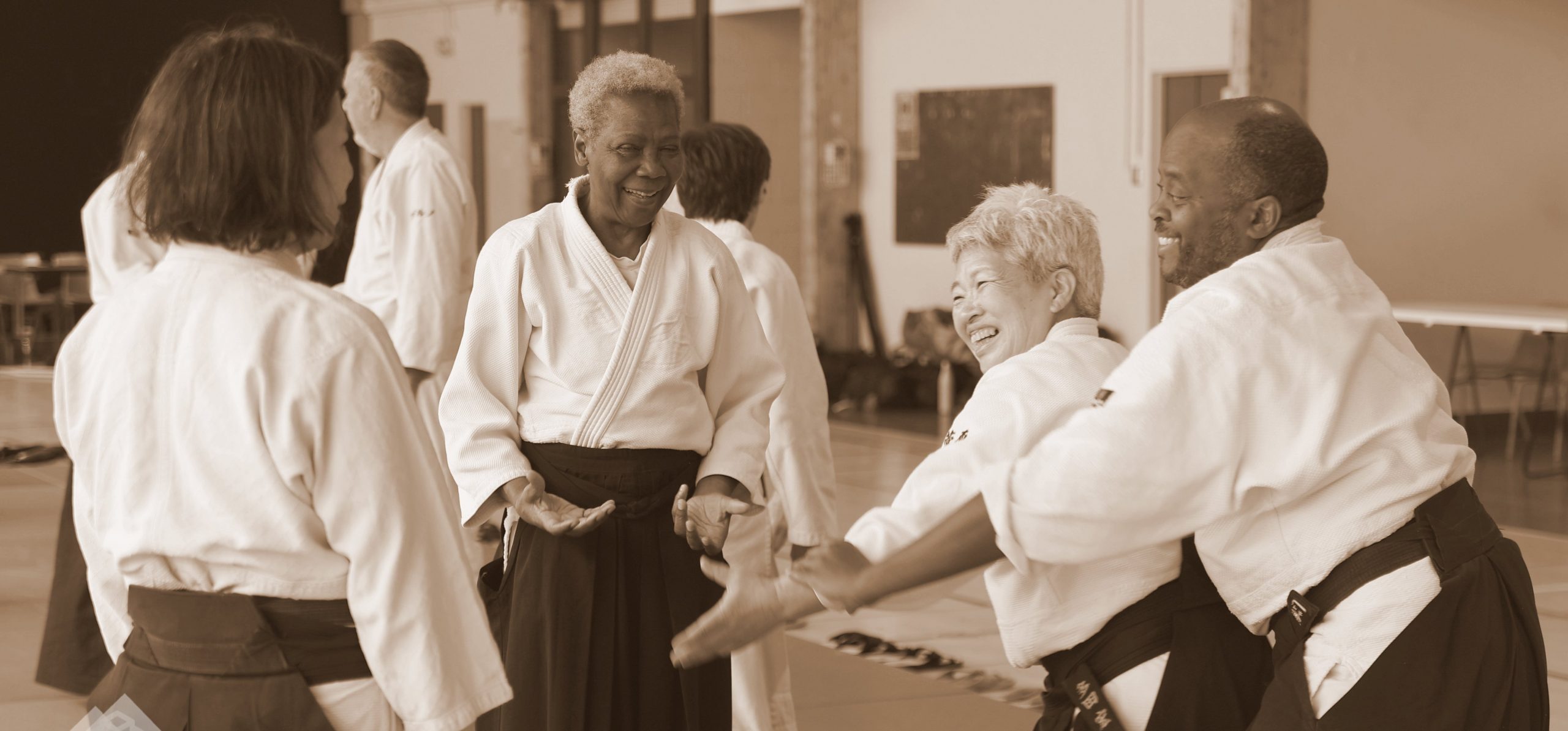 Mikiko Sugawara : La première chose, c’est que quand je pratique l’aïkido, j’éprouve de la joie. J’aime profondément la pratique. C’est aussi grâce à l’aïkido que j’ai pu vivre à l’étranger. Parfois il m’arrive bien sûr d’avoir des coups de mou ou de me sentir un peu négative. Mais je pense que l’aïkido, en tout cas la manière dont Maître Tada nous l’a enseigné, c’est la capacité de changer de direction, de transformer le côté négatif en quelque chose de positif. Pour moi, l’aïkido a été une source de force. Et ça, j’aimerais le transmettre aux autres, que ce soient des enfants ou d’autres pratiquants, parce que on a tous besoin d’avoir une ressource d’énergie. On a tous besoin de garder, de conserver, d’accumuler de l’énergie et de la force, que ça soit pour la vie à l’école ou dans le quotidien. Au-delà des techniques de l’aïkido, je voudrais aussi apprendre aux pratiquants cet aspect, cette capacité de changer de direction, du négatif vers le positif, et d’avoir plus de force vitale. Voilà ce que j’aimerais continuer d’enseigner. Bien sûr, même dans l’aïkido il y a des jours où ça se passe très bien et il y en a d’autres où je trouve que je n’ai pas du tout réussi. Ce que je voudrais, c’est augmenter les moments où cela se passe très bien, les bons moments en aïkido. De plus, pour moi, l’aïkido est vraiment très amusant et joyeux. Et puis, l’aïkido fait partie de ma vie et je n’ai donc jamais pensé qu’il pouvait en disparaitre. D’ailleurs, quand on regarde Maître Tada, à 95 ans, on ne peut vraiment pas dire qu’il manque d’énergie ou qu’il en ait perdu ! Pour résumer, les enfants par exemple, quand on leur donne un cours, ils changent. Ils changent vraiment beaucoup, de manière fulgurante même. C’est vraiment fantastique de voir cette différence. C’est sûr que cela procure de l’émotion et c’est une motivation pour l’enseignant. Même les adultes changent. Ils s’améliorent en technique et au niveau des sensations. Ils se présentent à un examen et ça se passe bien. Parfois j’ai des retours de pratiquants adultes qui me disent : « Ah j’ai réussi à appliquer les principes que j’ai appris à l’aïkido dans la vie de tous les jours ». Inversement, quand les gens s’arrêtent ça me rend triste. Donc, ce que j’aime voir aussi c’est comment les gens changent dans leur vie grâce à la pratique de l’aïkido.